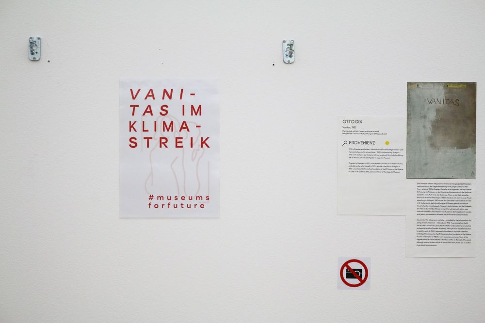 Wo einst die Vanitas (1932) von Otto Dix hieng verweist nun ein Plakat auf die aktivistische Aktion des Zeppelin Museums.